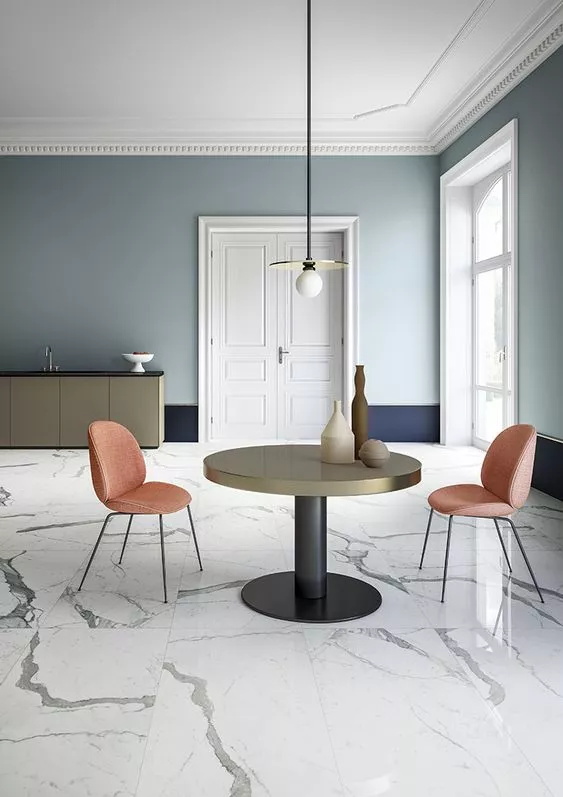 歐洲的室內(nèi)設(shè)計更多地在探尋家具如何為已經(jīng)精心設(shè)計的室內(nèi)空間錦上添花。當(dāng)室內(nèi)空間已經(jīng)足夠現(xiàn)代的時候,設(shè)計師們會尋找更加獨特的設(shè)計語言來表達(dá),賦予空間獨一無二的標(biāo)記。一個簡單又有力的方式就是在房間里的墻上下部分涂上不同顏色的涂料。
