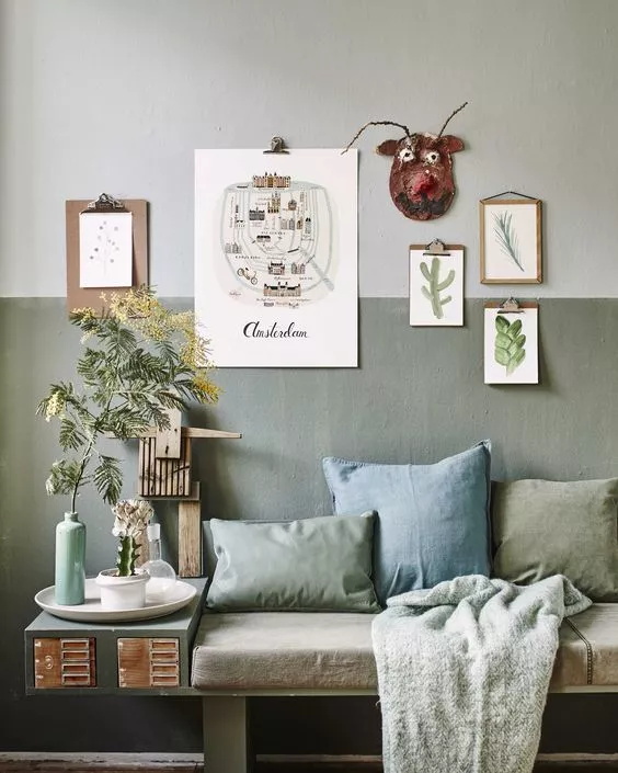 雙色墻面的出現(xiàn)并不是純粹為了讓空間變得更加美觀有趣味,它也是一種設(shè)計方式,并且還可以搭配讓家具變得更加有設(shè)計感。