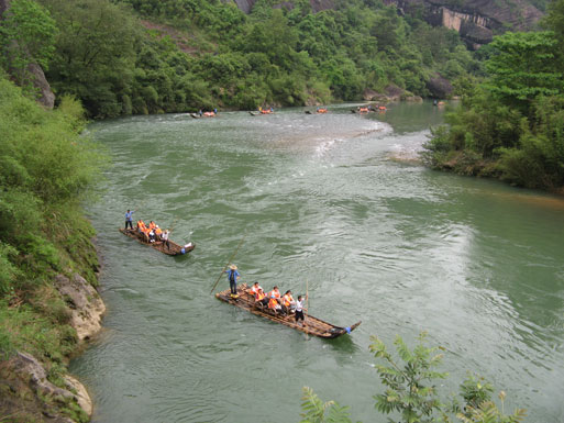 3輛客車,150人的隊伍,400多公里的路程,到達了世界文化與自然遺產--武夷山。 武夷山風景秀麗,氣候宜人,空氣清新,藍天、白云、奇山異石、古跡、溪流,處處美景盡收眼底!好山好水好天氣,3天的時間大致游覽了武夷山的著名景點,從天游峰、一線天、虎嘯巖、九曲溪,到最后的大紅袍景區,都讓人流連忘返。