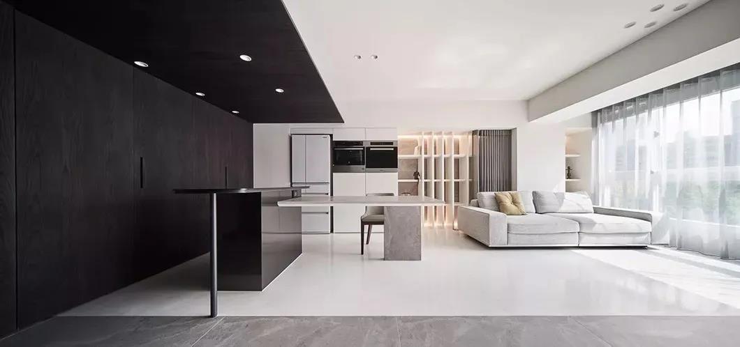 除此之外,沙發(fā)本身也是不錯(cuò)的隔斷工具,常見(jiàn)在客餐廳區(qū)域▼