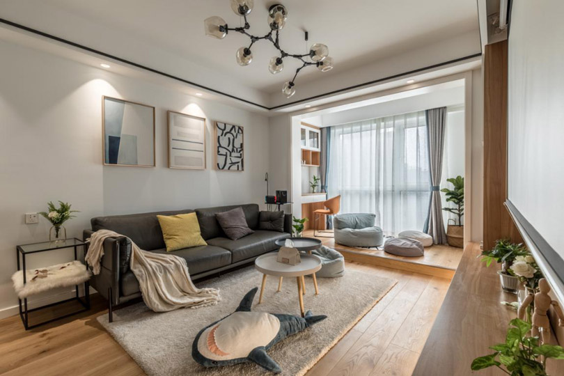 球形的燈組,通過一串的燈具搭配,是很多北歐簡約風格客廳的首選,目前大部分業主的客廳都是裝這種類型的吊燈。