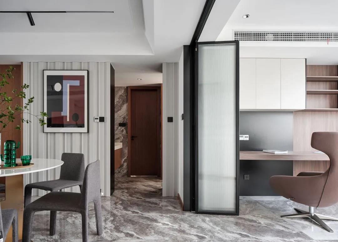 豎條紋壓花玻璃的“豎”,會比其他幾何線條更容易帶來“高”的心理暗示,且它作為隔斷或者移門時,會使空間看起來敞亮,實現各空間的和平相處。