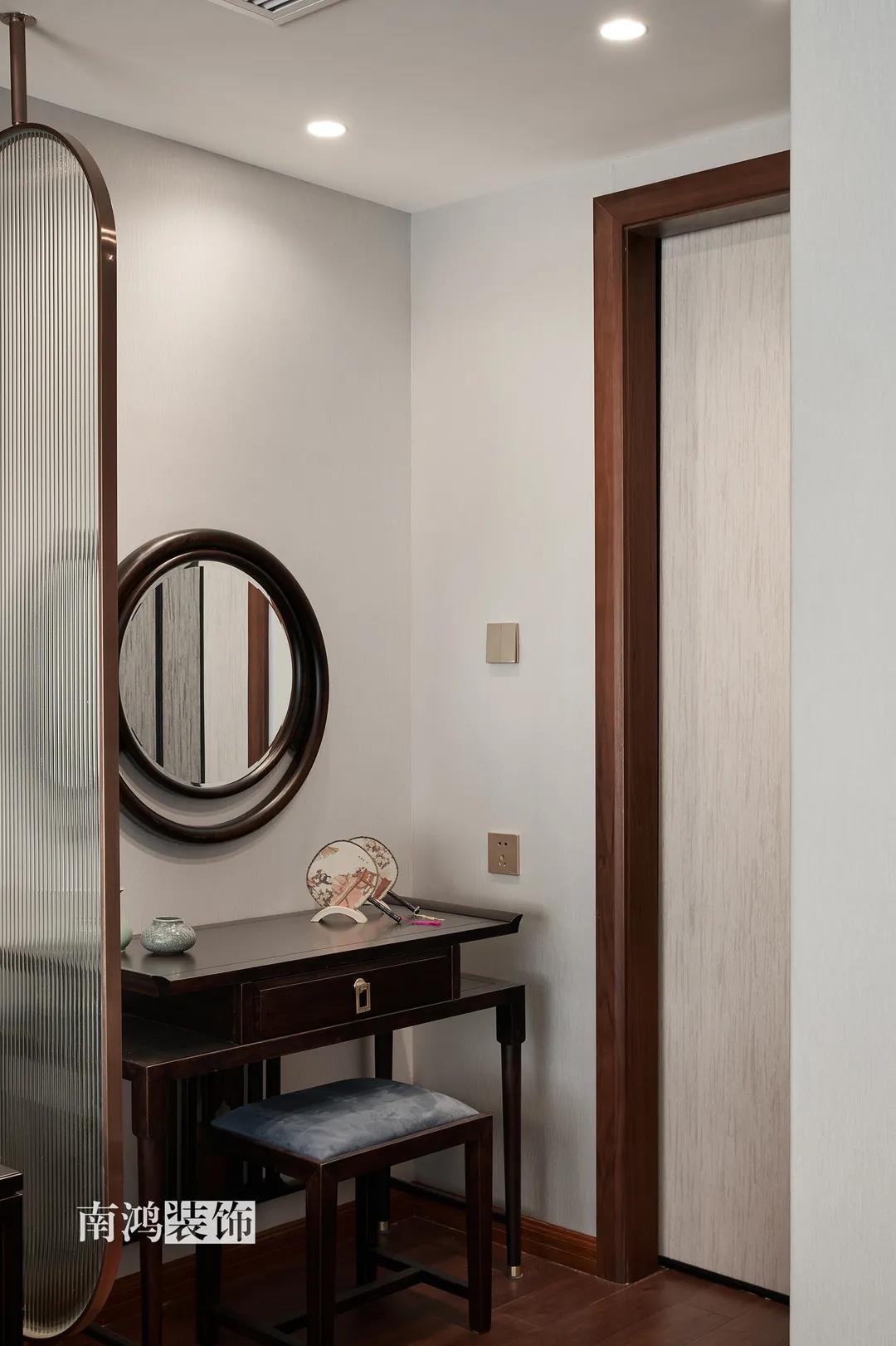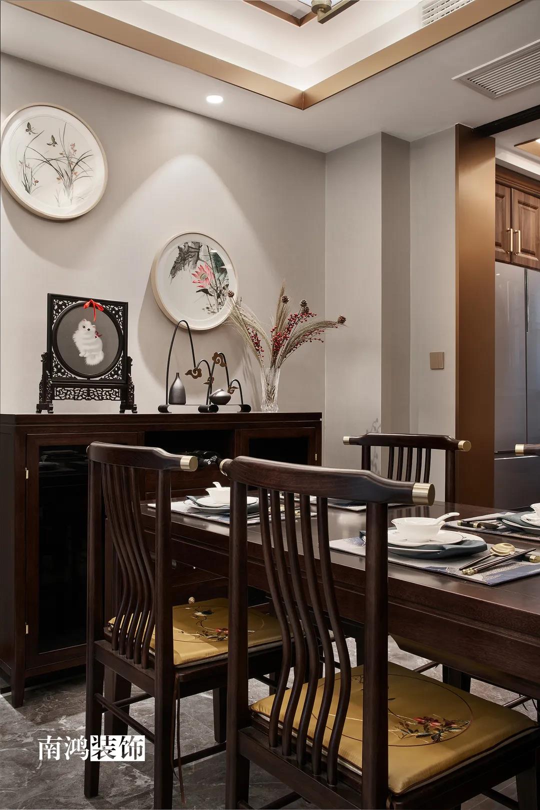 新中式風格是對傳統文化的再設計 亦是對中式風韻的現代化演繹 它將簡約內斂、精致古典的特性融入生活 有條不紊地傳遞著空間力量 01. 玄關 ENTRANCE 入戶玄關開啟了這個家的序章,彰顯著十足的儀式感。墻上開圓洞,能借此窺見到廚房的景象,空氣中也仿佛彌漫出淡淡的菜香,是只屬于家的味道呀。 02. 廚房 KITCHEN 廚房做半開放式,與玄關相連。布局是動線更為簡短的U字型,按“入戶-冰箱-水槽-灶臺”的順序就能高效開始下廚時光。 03. 客廳 LIVING ROOM 溫馨典雅的客廳空間,色彩調配和諧,不寡淡,不張揚,布藝與原木釋放著柔和氣息,一切皆從生活的本質出發,在自然之美中找尋到心靈的歸宿。 個性定制的藝術硬包化作沙發背景墻,盛開的花朵寓意著生活的美好。兩側做鏡面裝飾,既是對吊頂細節的呼應,又在無形中放大了空間。 客廳望向餐廳的角度,從這里可以清楚看到客餐廳與廚房、玄關之間的移門位置,移門一拉,便是兩塊互不打擾的獨立區域。 04. 餐廳 DINING ROOM 經過精心“妝容打扮”的餐廳就像從畫卷中走出的江南美人,優雅動人,秀麗端莊。 瓷盤花藝、畫扇茶器等中式元素,共同構筑起這個清雋和雅的室內場景,使其更為飽滿的同時視覺上也更有層次。 05. 臥室 BEDROOM 主臥納入陽臺以增強整體的空間感與明亮通透度,床尾的斗柜方便小件收納,活潑的藍粉與淡雅的綠形成對照,彰顯獨特個性。 作為休憩的地方,設計師在空間內摒棄多余的裝飾,讓每一件物品都顯得不可或缺。 女兒房結合了鮮亮的明黃與溫柔的香檳色,充滿著活力與希望。 長輩房用色沉穩,并選擇了素雅墻布來營造溫和觀感。 06. 書房 STUDY ROOM 書房,乳白色的漆面結合成品中式家具,主人的所有閑情雅致,都能在這方天地里,怡然自得。 07. 衛生間 BATHROOM 位于三樓的衛生間干區,相鄰樓梯,墻上順勢開洞以增強流動性,也不會顯得壓抑。墻地材質使用一致,保證空間的整體性。 平面戶型圖 -- ·項目信息· 項目名稱:上河宸章 建筑類型:疊排底躍 設計風格:新中式 項目地點:中國·杭州 項目面積:200㎡ 項目服務:設計·施工·硬裝·軟裝 全案設計 設計單位:浙江南鴻裝飾 施工單位:浙江南鴻裝飾