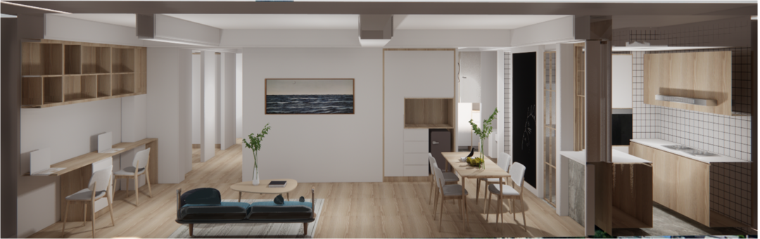 改造思路:①雙玄關(guān)設(shè)計(jì);②環(huán)繞動(dòng)線(打通空間,簡(jiǎn)化交通);③動(dòng)靜分區(qū),優(yōu)化房間朝向;④去客廳化,將客廳打造為注重家人互動(dòng)的多功能區(qū)域。