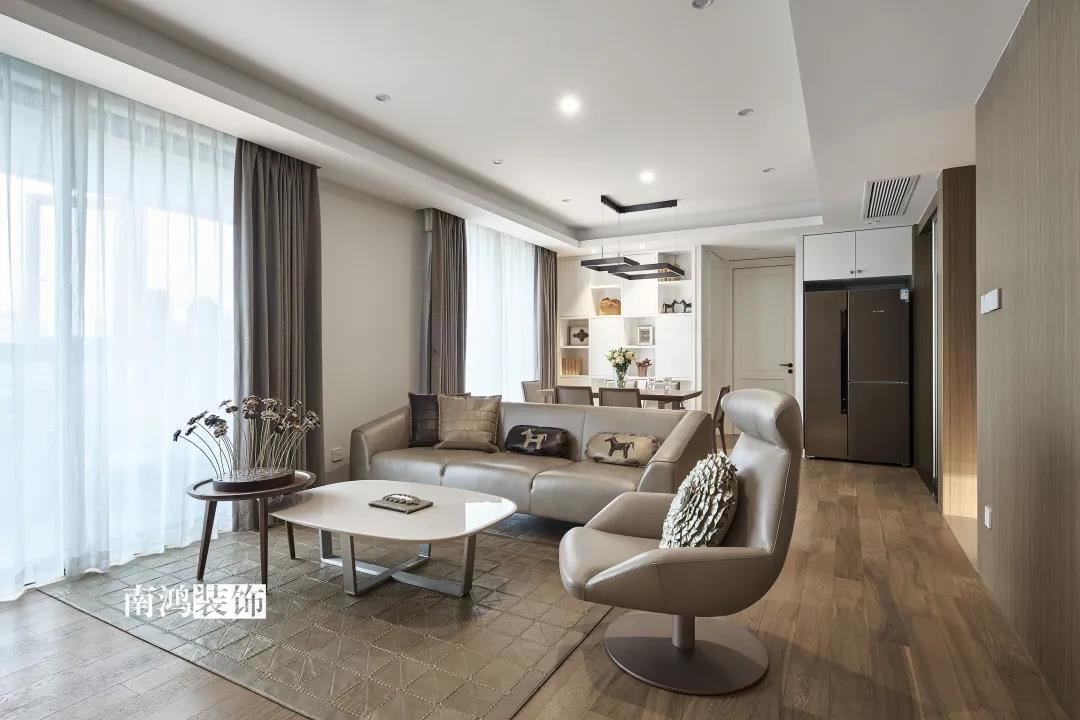 ▲開(kāi)放式客廳布局,以特別的線條設(shè)計(jì)來(lái)展現(xiàn)港式的前衛(wèi)時(shí)尚,大量的軟裝搭配讓整個(gè)客廳不會(huì)顯得單調(diào),總體上給人自然簡(jiǎn)潔、和諧寬敞的感覺(jué)。