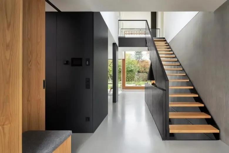有的樓梯經過改造后,成了家里一道亮麗的風景線;有的戶型通過更改樓梯位置,使空間動線得到優化,讓生活更加便捷。本期就帶大家了解關于室內設計中樓梯的一些干貨知識吧~ 樓梯的形式 一般來說,樓梯應用有這三種基本形式:直梯、弧型梯和螺旋梯。 直梯根據梯段的不同,可分為單跑、雙跑及三跑樓梯。直梯在生活中最常見,適合各種戶型。 弧型梯是以曲線來實現上下空間連接的一種樓梯形式,踏步略呈扇形,裝飾性比較強,多見于工裝。 螺旋梯外形最為突出,主要是以扇形踏步支承在中立柱上,占用空間面積最小。這種樓梯線條感非常強,而且做懸浮式居多,自帶藝術屬性! 樓梯的材質 打造樓梯常用的材質,主要有木質、鋼材、鐵藝、石材、水泥、玻璃等,而且基本都用組合混搭的形式,比如鋼結構+木踏板、玻璃扶手+大理石等等。 鋼結構樓梯施工便利,不像現澆筑樓梯需要模板,使用螺栓和焊接就可以進行連接。木質樓梯則視感溫潤,保暖效果好,不過耐磨性較差,不易保養和維護。 常用做法是利用鋼結構作為基底,在表層使用木質踏板,在獲得穩固受力的同時,可以避免全木樓梯走路發出聲音的問題。 鐵藝樓梯同鋼結構樓梯一樣,整體造型簡約,能體現金屬材料的線條美感,并且具有較強的防腐蝕、耐氧化的能力,還可以通過靜電噴漆和保持干燥來延長使用壽命。 石材樓梯一般與室內色彩材料具有統一性,防潮耐磨,易于保養,大理石樓梯還是很多大型空間的第一選擇。 ▲漂亮而奢華的大理石樓梯 樓梯的實用設計 接下來我們說一說日常生活中讓樓梯更具實用性的幾種設計。 收納問題是很多業主的首要考慮,畢竟隨著居住時間的增加,家里要放的東西肯定會越來越多,儲藏空間太少怎么行。 所以結合收納就成了一種常見也很實用的樓梯利用方式,尤其是在面積不太大的戶型中。 如果條件允許,可以直接在樓梯下設置那種小型的儲物間,盡量做到空間的高效化利用。 除了儲物收納以外,也可以將樓梯下的空間設計成休閑區,或與書房、餐廳等其他區域結合。 ▲做休閑區 ▲做書房 ▲結合餐廳 樓梯的實用尺寸 樓梯踏步:踏步的高和寬是由人的步距與人腿的長度來確定的,踏步的寬度以不小于24cm為宜,高度一般不宜大于17.5cm。 樓梯坡度:樓梯的常用坡度在20°-45°,最佳坡度在30°左右。 樓梯梯段寬度:通常單人通行的梯段不應該小于80cm,雙人通行的梯段約在l00cm—120cm。 樓梯扶手高度:扶手的高度約為90cm,樓梯平臺的扶手高度應該在90cm—110cm。 最后,關于樓梯設計,小伙伴們又有什么好的idea呢?