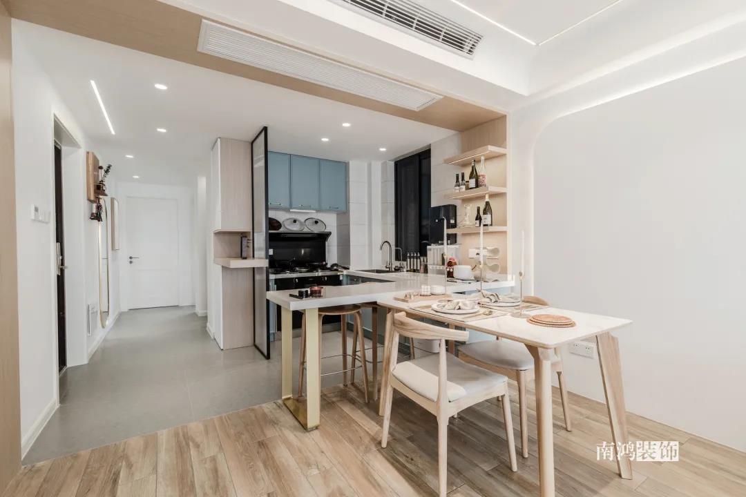 比如,開放式餐廚空間,讓餐廚兩塊區(qū)域的動線共享,實現(xiàn)“1+1>2”的效果,小戶型也能擁有一個比較寬松舒適的做飯、就餐空間。